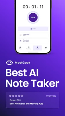 MeetGeek is the AI-powered voice recorder app & AI Note Taker that allows you to transcribe speech to text and record audio in over 30 languages for: