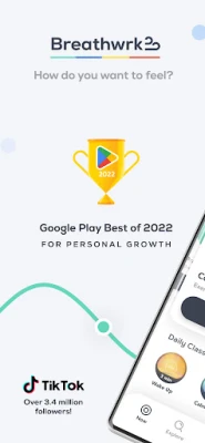 Breathwrk is the number one app in breathing. Breathing is your body's superpower, you can create nearly instant changes in your body and mind with the power of breathing. Breathwrk guides you through quick and powerful breathing exercises that eliminate stress & anxiety, increase energy, improve endurance, and help you fall asleep. Learn and practice a variety of science-backed breathing methods that are guided by original music, vibrations, and visuals.