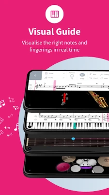 • Visualise the right notes and fingerings in real time with the Visual Guide,